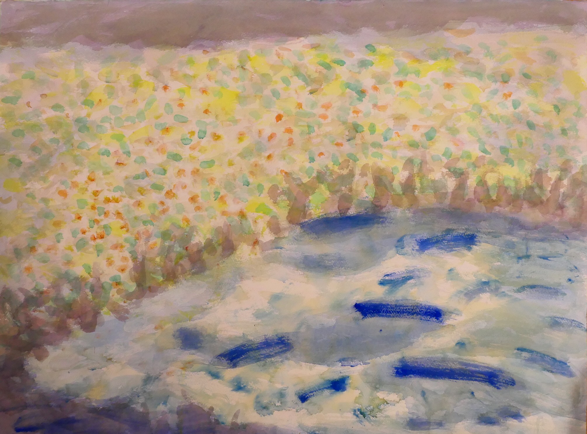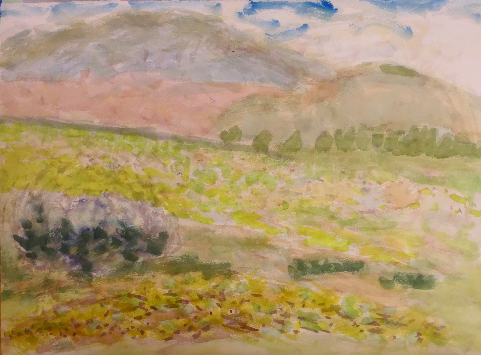 並べてみると色がいくらか薄い。柔らかいと言えば言える。春の色を思い出して描いているような気がする。山梨の春を思い出しているような気になる。色が変わるというのは、大事ではある。何か変化して行く前兆かもしれない。少し気になる。