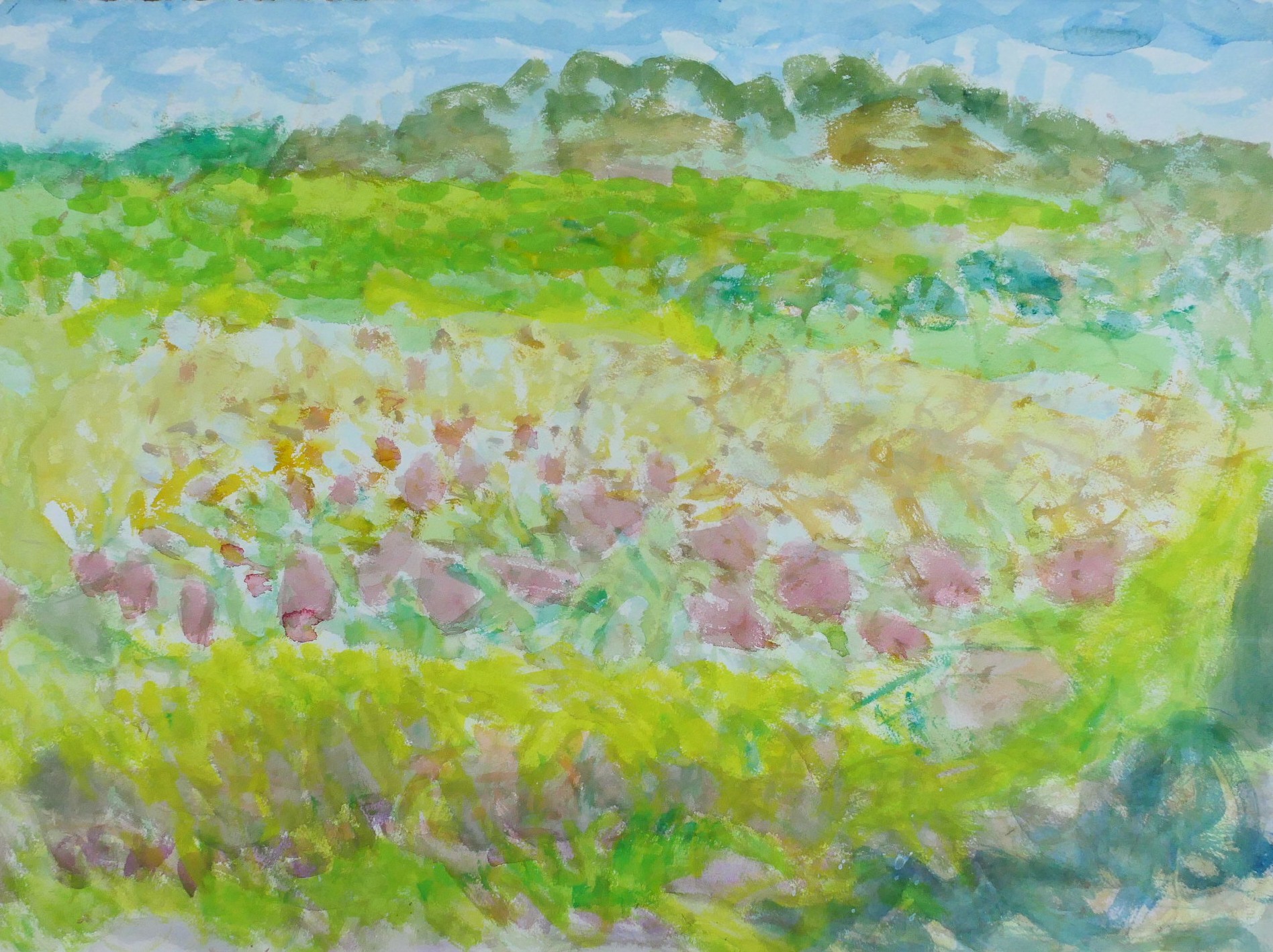 田植が終わり落ち着いて絵が描けた。もう少し描けるつもりでいたのだが、2枚だけだった。まあ仕方がない。じっくり進めて行く。いくらかでも絵が変わっているので、この調子で続けて行きたい。水彩絵の具の使い方は、いくらか理解できてきたと思う。