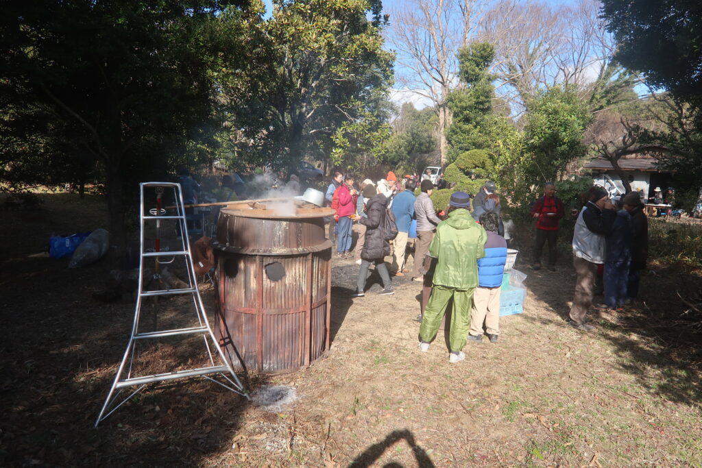 農の会の味噌づくりが1月の25日に行われた。100名くらいの人が集まったのではないかと思う。大釜一つでは足りずに、中釜も並べて大豆を煮た。早朝5時に釜に火を入れて、10時くらいから、煮えた大豆を配り始めた。
