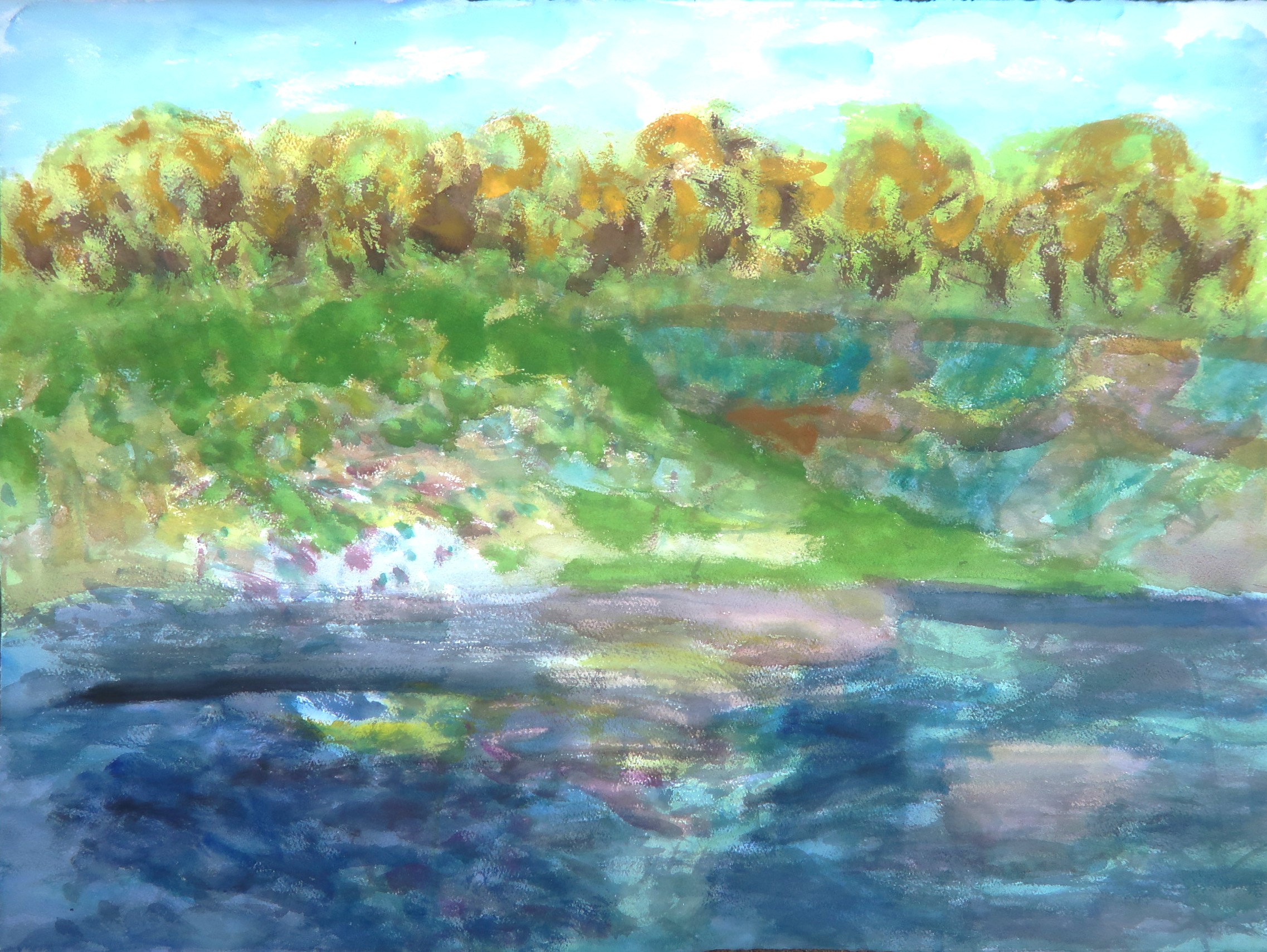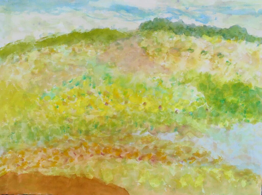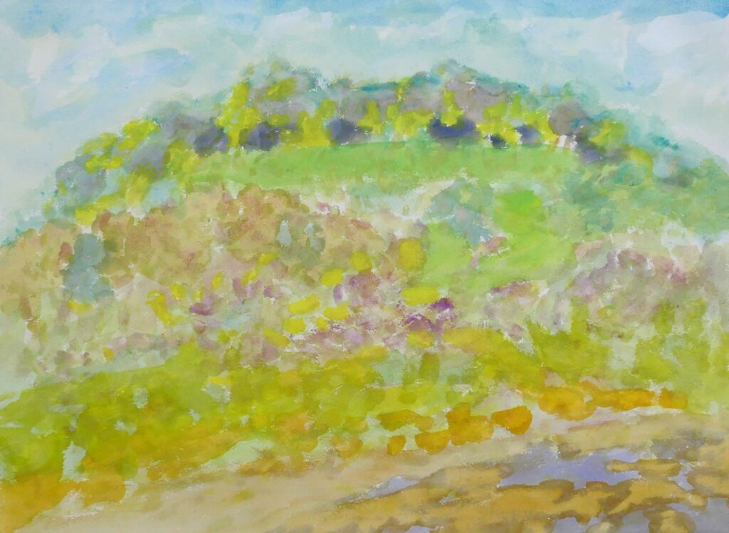 中川船番所の絵は、今度写生会の場所を下見に行き描いた。昨年も一度描いてはいる場所である。その場で描いたのではなく、石垣に戻り描いた。記憶の絵である。どこで何を描いたとしても同じことである。ただ風景が絵として記憶されるかどうかが大切になる。