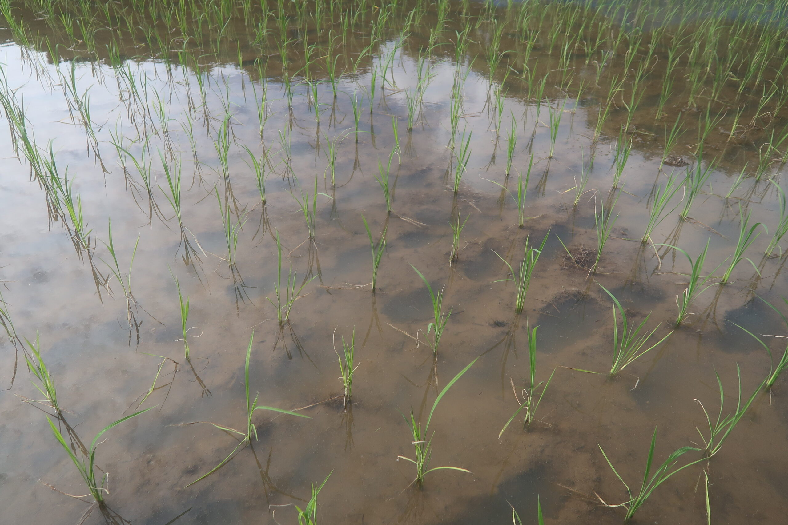 ここからが田植3週間後の田んぼの様子。