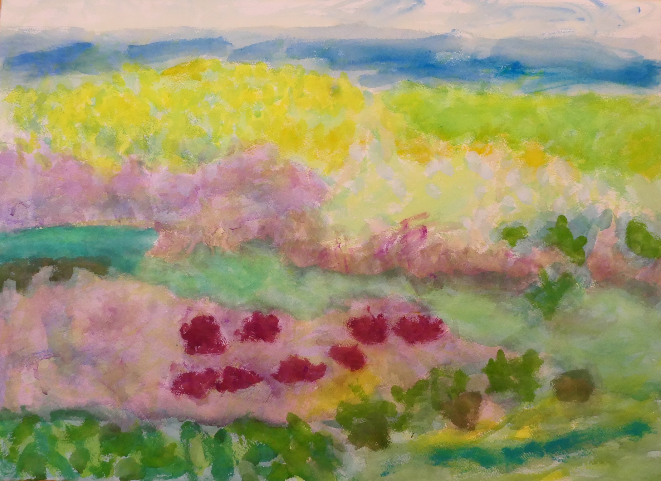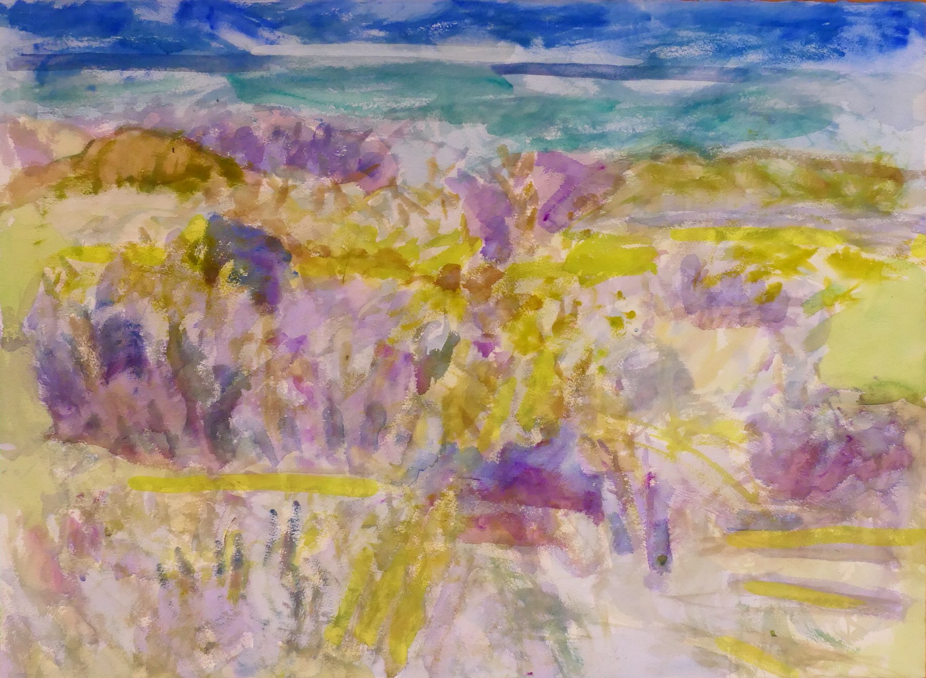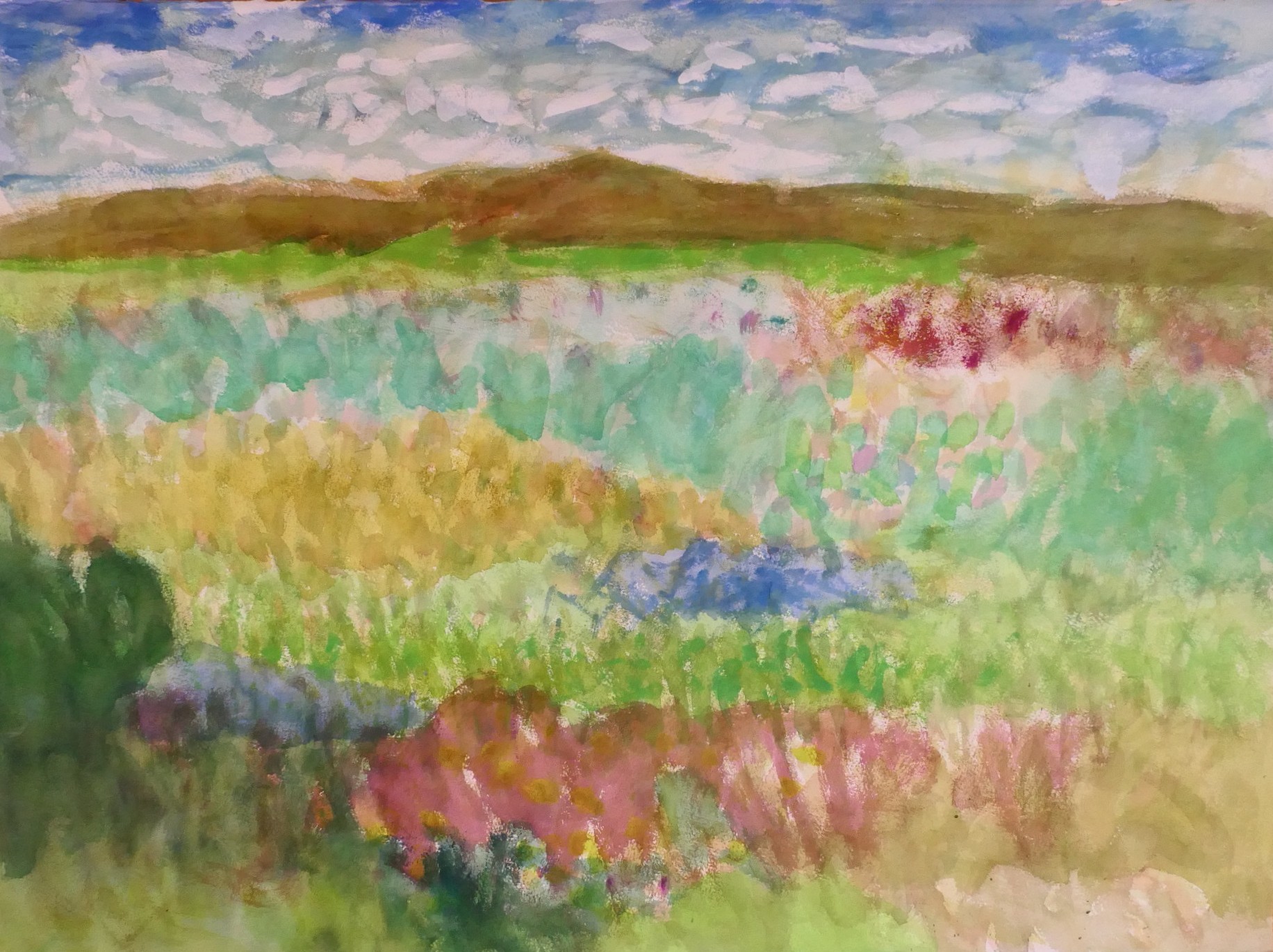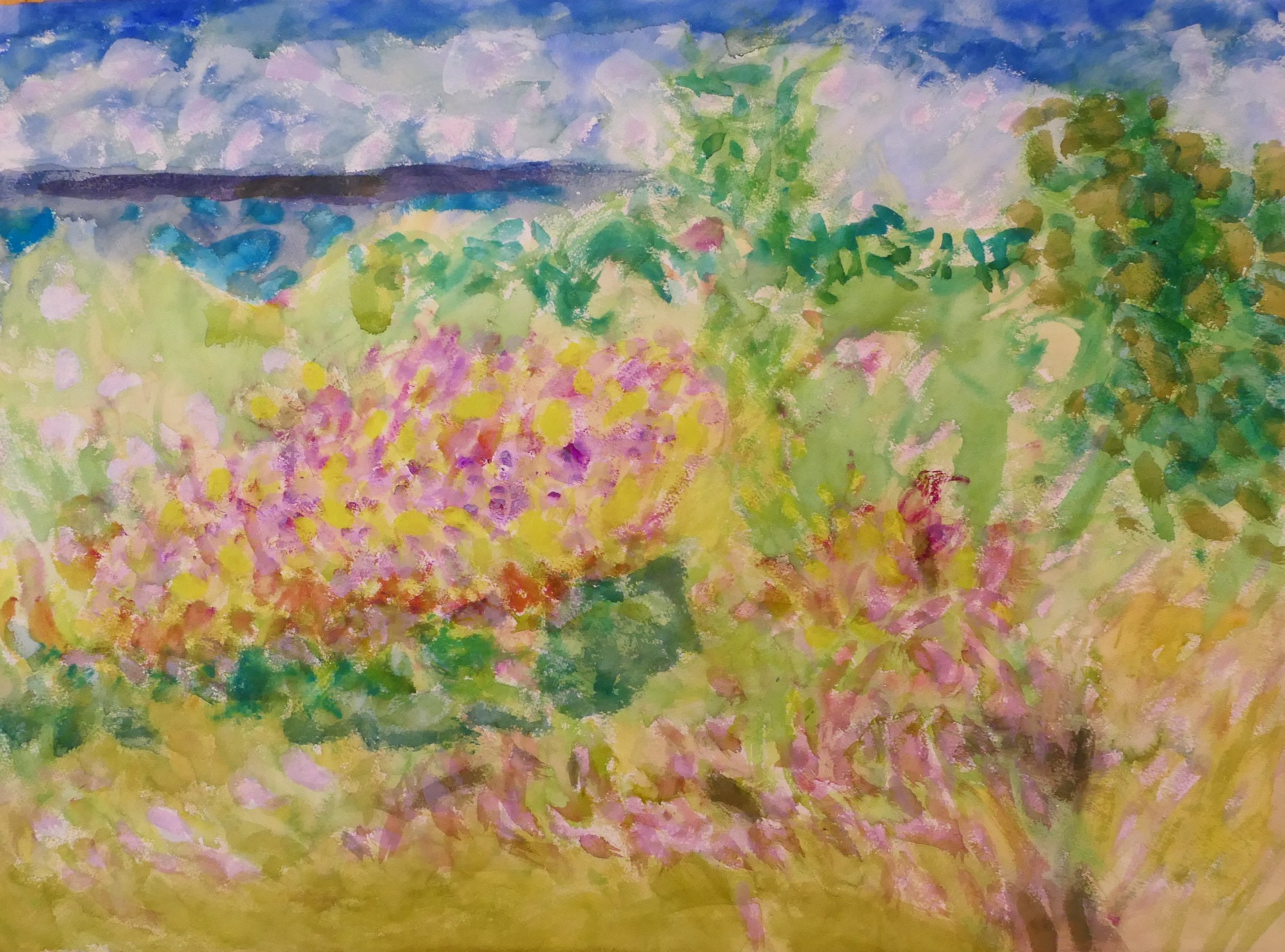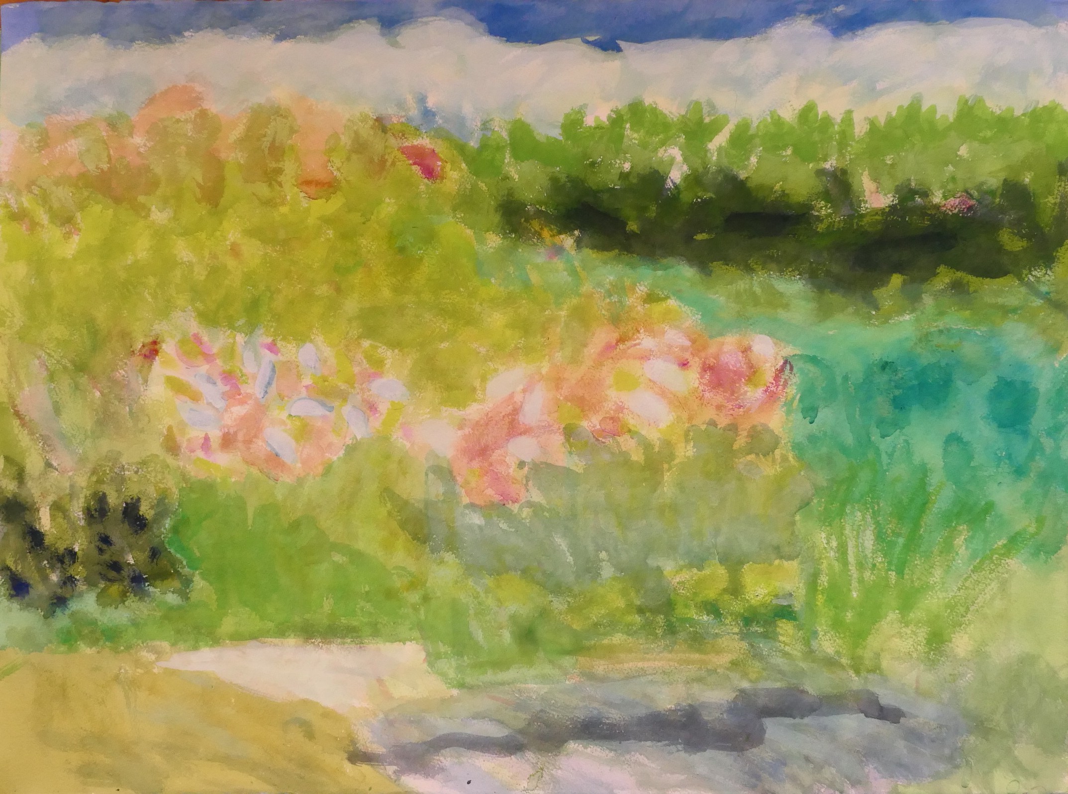 シゲミが繰り返し洗われてくる。どこを見てもシゲミがあるから、当然のことかも知れない。描いていると実に面白い。草の波が面白いと思っていたのだが、そうした広い空間のきょうみではないようだ。シゲミの中にこもっている。自然の切り口が見えるような気がする。